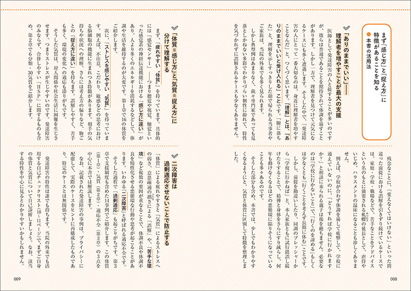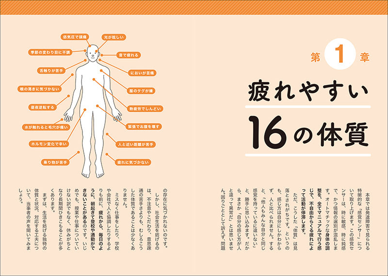 この本は、「神経発達症群(発達障害)」について、それぞれの病名よりむしろ、「体質」と「気質」の観点からその症状を成り立たせている特性に注目し、より細分化して60に分類、それぞれの特性に対する理解や接し方を解説していきます。