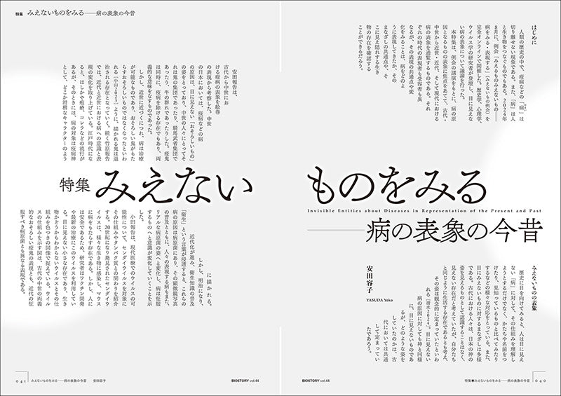 本特集は、シンポジウムの講演をもとに、病の原因となるものの表象に焦点をあてて、古代・中世から近世・近代、そして現代における病の表象を通覧するものである。
