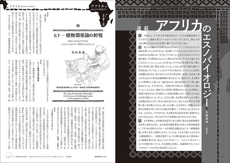 日本におけるエスノバイオロジー研究のひとつとして、ヒトと植物の相互的関係を扱う研究、そのなかでもアフリカを対象にしたものをふりかえる。