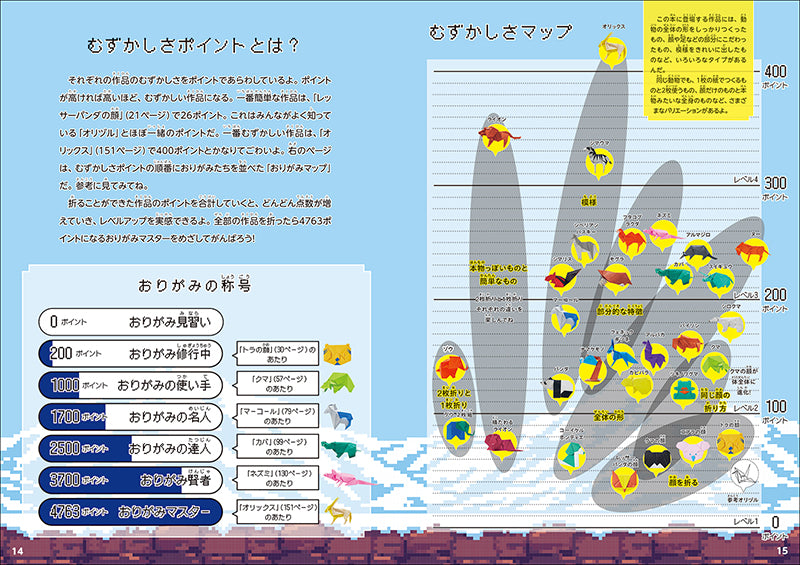 レベルは1から4まで。作品を折るごとに、少しずつむずかしさが上がっていきます。