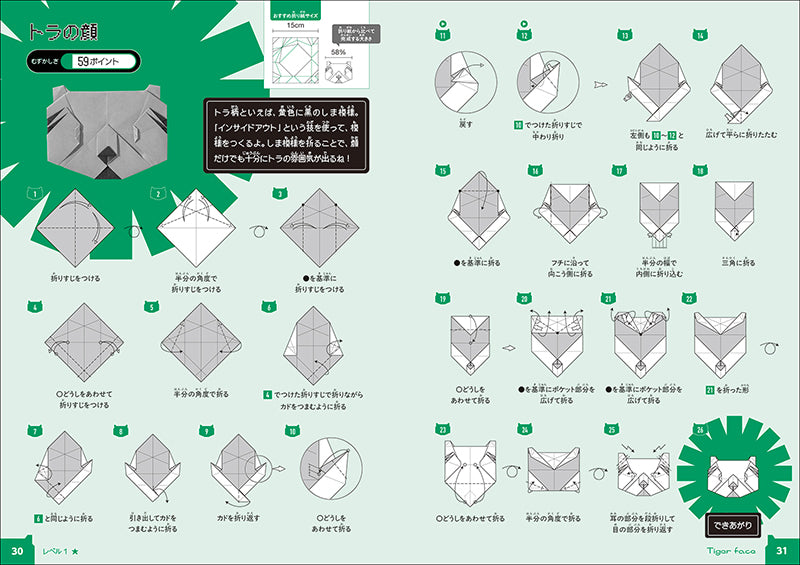 この本には、全部で30種類の動物おりがみの作品が登場します。