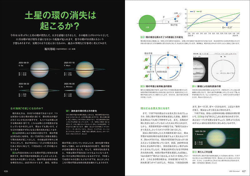 2025年には地球から見て土星の環が見えなくなる「土星環の消失」が2回起こりました。そして11月25日ごろ、土星環が極薄の状態になるため、土星の環が見えない状態“準消失”が起こりますが、その観測のポイントを解説します。15年ごとにめぐってくる土星環の消失は、今回が最後になります。再び環のない土星の姿を目にするチャンスは15年後となるため、見逃せません。