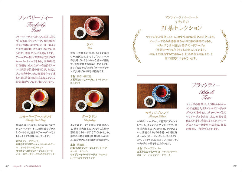 リピーターも多く、何時間でも居たいと思う癒しの空間、マリッジティールーム。優雅なティータイムをギュッと本につめこみました。紅茶とお菓子とアンティークのマリアージュをお楽しみください。