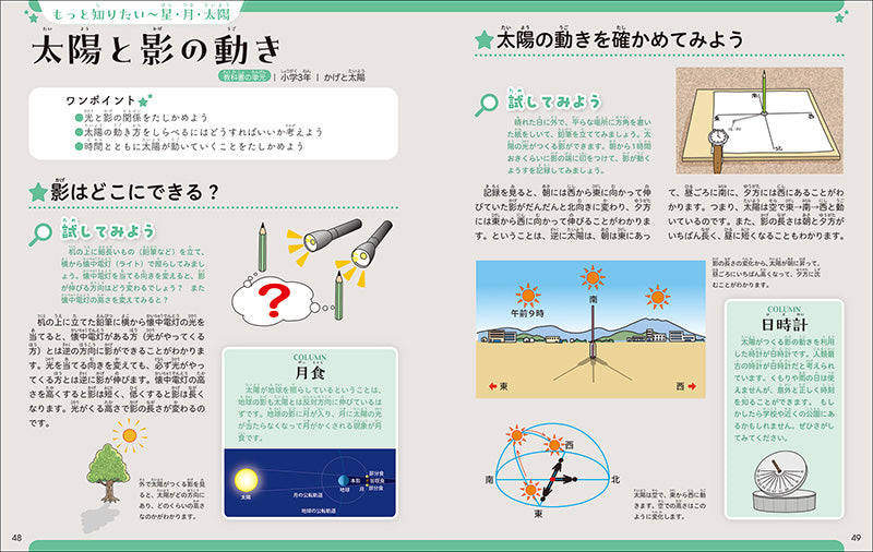 そのほか、小学校で学習する星・月・太陽についての知識をわかりやすく紹介しています。中学校で学習する天体の動きについても紹介しました。